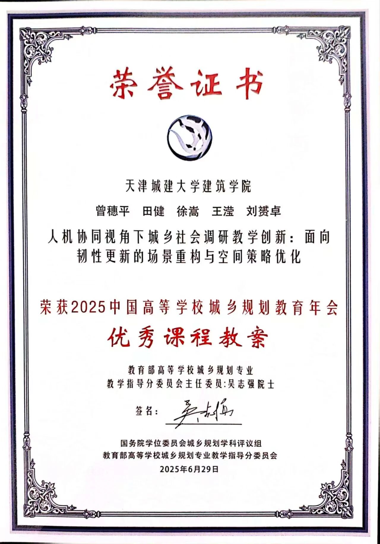 我校建筑学院教师在年会上再创佳绩,曾穗平、徐嵩、赵晓燕、靳泓在年会上获得优秀教研论文奖4项;曾穗平、杨佳璇以城乡社会调研教学创新、四年级城市设计教学实践获得优秀课程教案奖4项,我校位列优秀教案(设计类)表彰学校之一;获WUPENiCity城市可持续调研报告国际竞赛优秀组织单位。