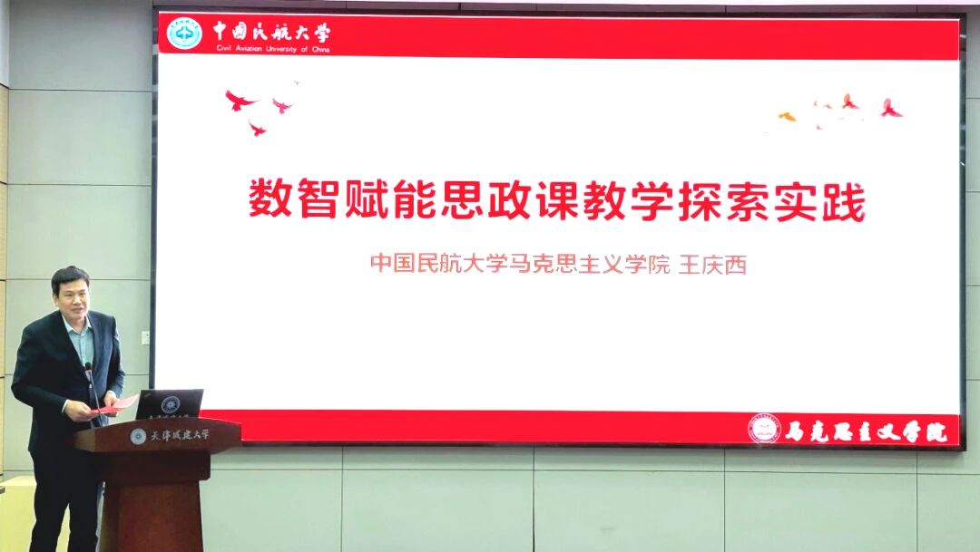 中国民航大学马克思主义学院院长王庆西教授作主旨报告。他围绕“数智赋能思政课教学探索实践”这一主题,从政策引领、AI赋能课程建设、未来规划三个方面,深度解析了思政课在生成式AI时代的发展契机,阐述了数智赋能思政课教学的机遇与挑战,并分享了中国民航大学马克思主义学院在AI赋能思政课建设以及智慧课程建设中的前沿成果与实践经验。