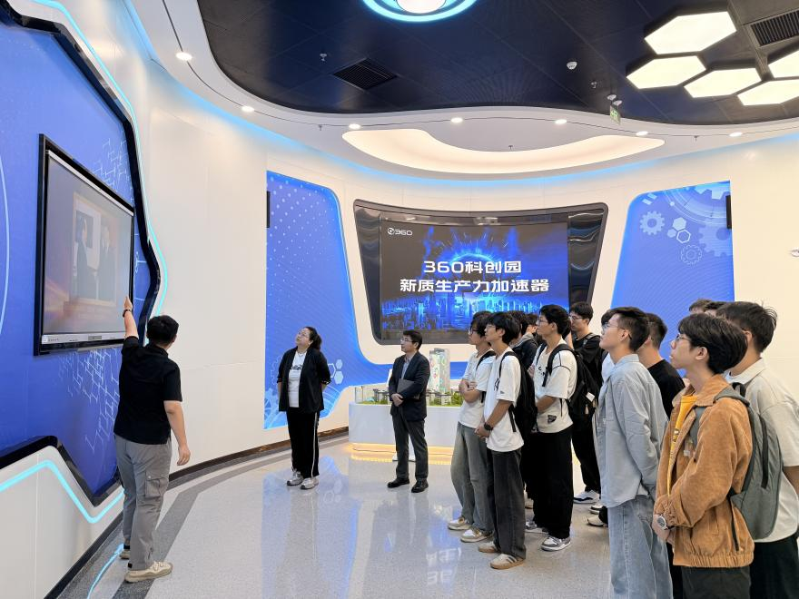 在企业讲解员的带领下,师生们先后参观了360集团天津总部的网络安全运营中心(SOC)、技术研发实验室及企业文化展示区。在网络安全运营中心,工作人员演示了实时大数据监测分析平台如何对网络攻击、数据泄露等安全风险进行精准识别与快速响应,生动展现了 “数字安全大脑” 在保障关键信息基础设施安全中的核心作用。同学们围绕 “网络攻击防御技术”“数据隐私保护措施” 等问题与技术人员展开交流,现场学习氛围浓厚。在技术研发实验室,师生们近距离接触了 360集团在人工智能算法优化、物联网安全检测等领域的最新研发项目。同学们纷纷表示,通过观摩企业的研发环境与工作模式,深刻感受到理论知识与实践应用的紧密联系,拓宽了专业视野。作为计算机专业背景的学生,大家备受鼓舞,更加明确了未来的学习方向与职业规划。