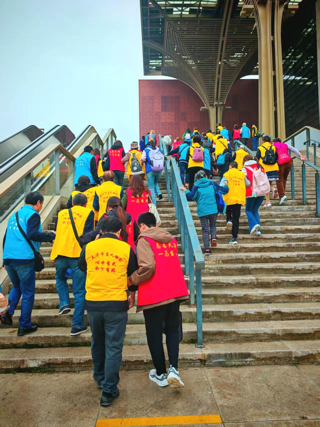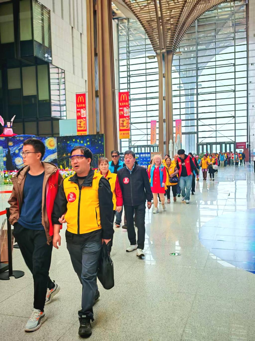活动当天清晨,天城大志愿者服务队的师生们早早来到各个接站口等候视障朋友们的到来。志愿者们主动迎上前,以温和的语调进行自我介绍,伸出手臂提供支撑。一句“您放心,今天我全程陪您逛科技馆”的暖心承诺,不仅迅速拉近了彼此的距离,也有效缓解了视障朋友初到陌生环境的不安与紧张。