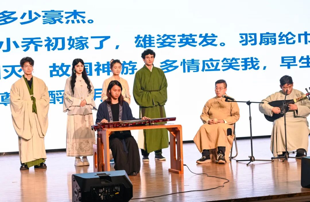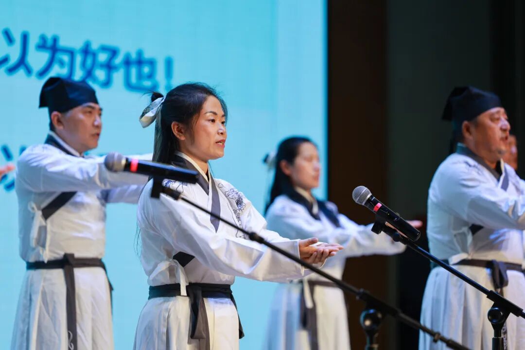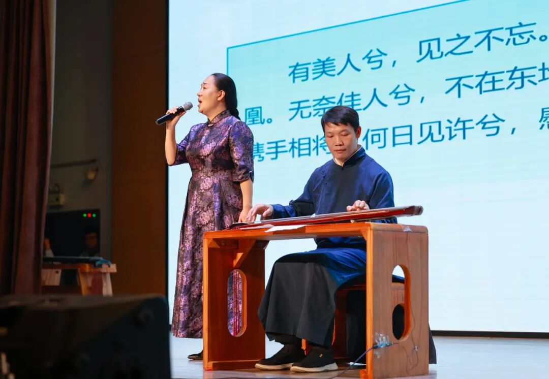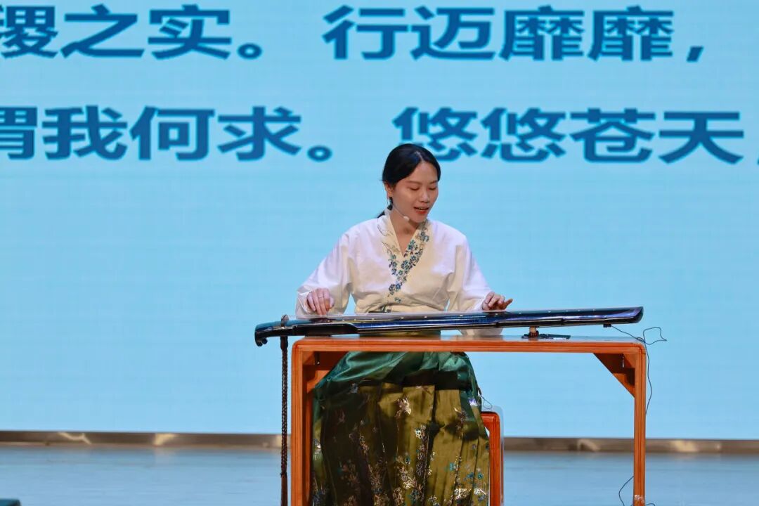 百余名展演人员倾情演绎,琴声或苍劲低沉,或清越悠扬;歌声抑扬顿挫,吟唱千年诗章。这不仅是一次艺术的鲜活展示,更是一次深刻的文化熏陶。艺术家们不仅以声传文,再现千年礼乐文明的庄重典雅;更是以美启智,于音韵和谐里激发无限想象。当千年弦歌遇见青春校园,琴音与吟唱交织出穿越时空的意境,这座“有声”的桥梁,这堂别开生面的“大思政课”使师生在艺术的沉醉中,直观感悟中华文明的博大精深,极大地增强了文化自信与民族认同。