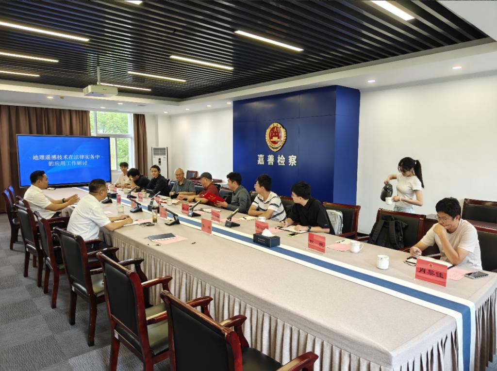 研讨会上,嘉善县检察院检察长董孝威、副检察长黄冬磊、高级检察官徐煜围绕“遥感技术在公益诉讼中的应用与发展方向”与我校师生进行了深入交流。双方探讨了进一步合作与技术研发重点,包括区域协作,打破行政边界,推动长三角生态绿色一体化发展示范区建设;技术升级,推进三维建模技术在公益诉讼遥感监测中的应用;智能化发展,融合AI识别与遥感分析,提升数据处理与信息提取精度三方面内容。此外,检方还特别表扬了我校在读研究生马云峰、尉凯翔同学在实习工作期间的优秀表现,肯定了他们扎实的专业能力与工作态度以及在公益诉讼遥感应用工作中做出的贡献。