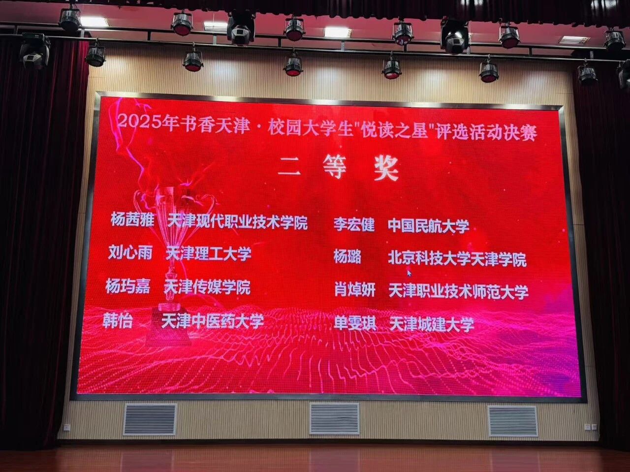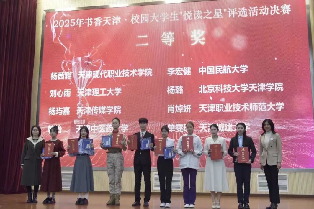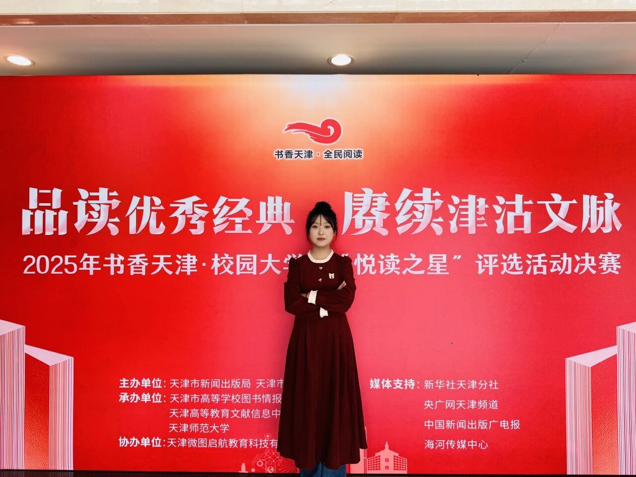 近日,2025年书香天津·校园大学生“悦读之星”决赛在天津师范大学举办。我校校内选拔赛一等奖获得者国际工程学院2024级风景园林专业的单雯琪同学获得市级总决赛二等奖,我校图书馆获评“最佳组织奖”。