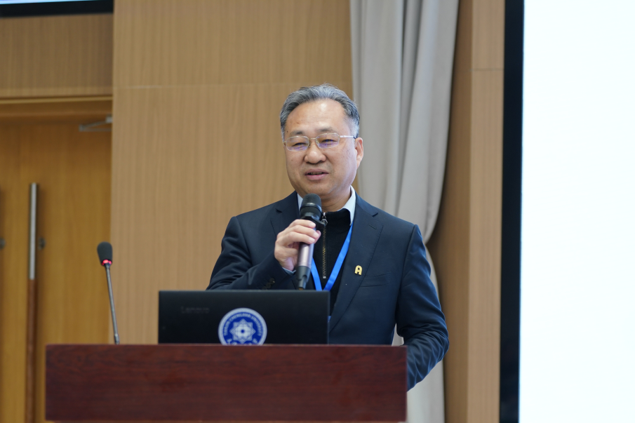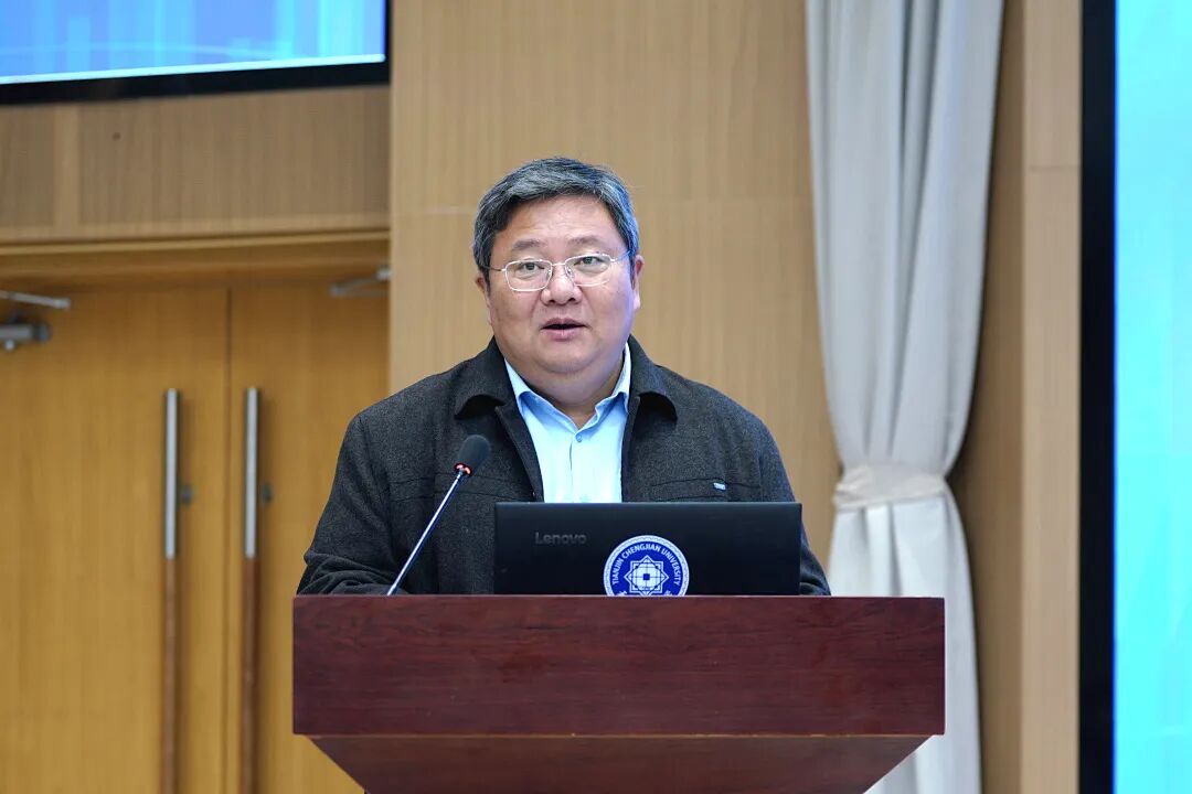 主旨报告环节由我校建筑学院院长汪江华主持。李霆作题为《智能建造重塑建筑业新生态》的报告,表示未来五年需推动重体力劳动向机器作业转型,通过标准化降低成本,推动行业从“功能房”向“智能房”跨越,重塑科技密集型新生态。