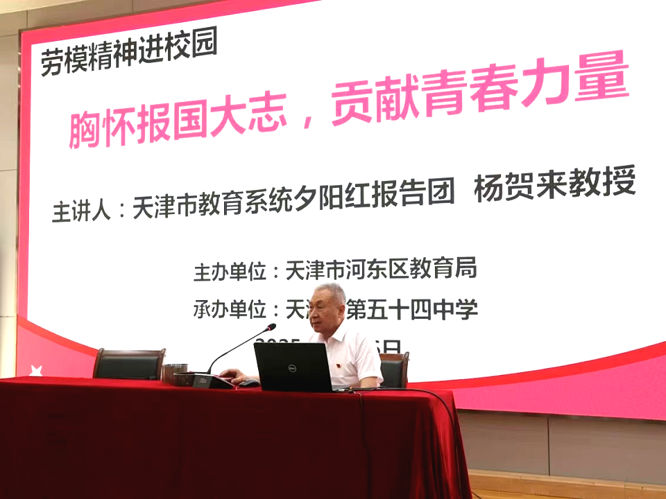 杨贺来教授不断探索石油行业科技创新和产业创新融合之路,把科技成果转化为生产力,同时在关心下一代工作上持续发力,围绕“爱国主义精神”和“劳模精神”开展宣讲活动。