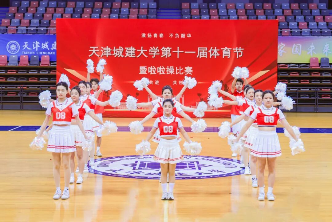 曾在“2025年天津市大中小学啦啦操比赛”中荣获冠军的CC-Rainbow彩虹啦啦队为师生带来精彩展演,既为观众呈现出独特的视觉体验,更将现场的热烈氛围推向高潮。