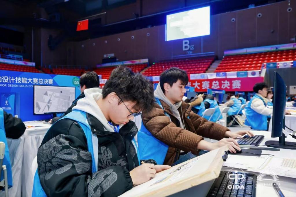 本次大赛由中国室内设计协会联合教育部职业院校艺术设计类专业教学指导委员会共同主办,以提升学生专业技能、培育工匠精神为宗旨,面向全国中职、高职及本科院校室内设计相关专业学生开展,设29个省赛赛区,共吸引全国1000余支队伍参赛。竞赛内容涵盖手绘设计图、数字模型渲染、效果图制作及设计排版展示等环节,全面考察选手的设计思维、技术表现与团队协作能力。我校参赛学生在紧张的赛程中沉着应对,高质量完成各项任务,其作品在创意、实践与完成度等方面均获评审专家好评。