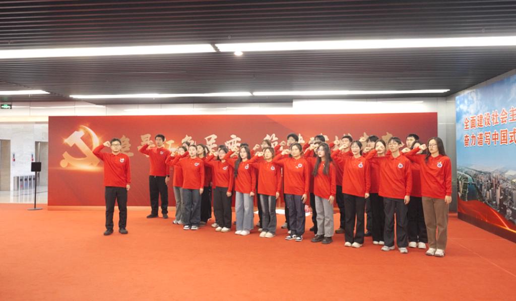 活动伊始,全体学员在展厅内通过大空间VR技术,沉浸式体验了数字还原的中共一大场景。在跨越时空的光影交织中,学员们“亲临”建党初心的萌发之地,深刻感受那段开天辟地的历史时刻所蕴含的信仰力量。从石库门到天安门,从建党伟业到复兴征程,虚拟与现实的交融让红色历史变得可感可知,为学员们上了一堂生动而深刻的“初心第一课”。