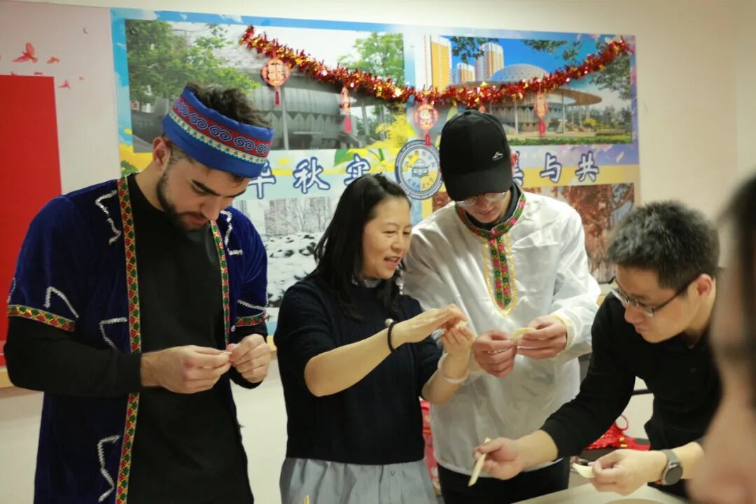 在备受期待的“全员包饺子”环节,在老师和中国同学的指导下,留学生们饶有兴致地学习填馅、捏合,学院教师和中国学生们也热情地分享着包饺子的技巧和家乡的饺子样式。随后,师生们围坐在一起,品尝着这份象征团圆与祝福的传统美食——热气腾腾的饺子,欢声笑语不绝于耳。现场其乐融融,气氛热烈,小小的饺子成了连接中外师生情感的纽带,让大家在亲手实践中深切体验了中国的“年味”。