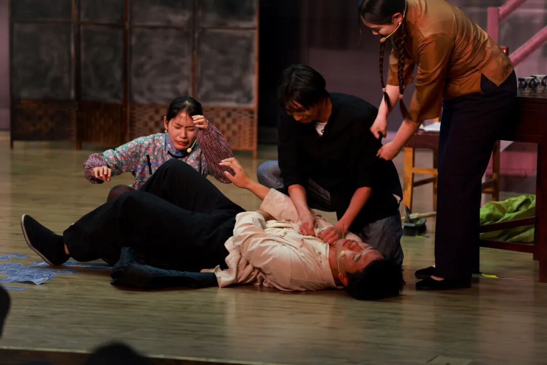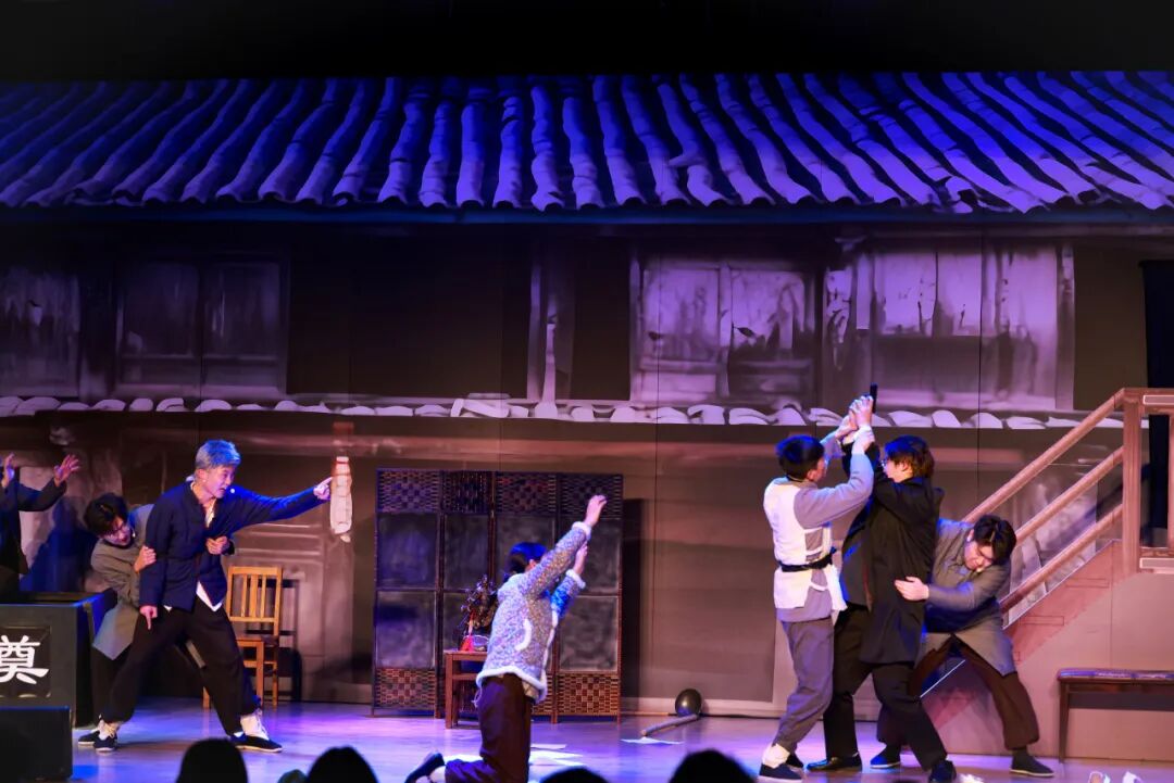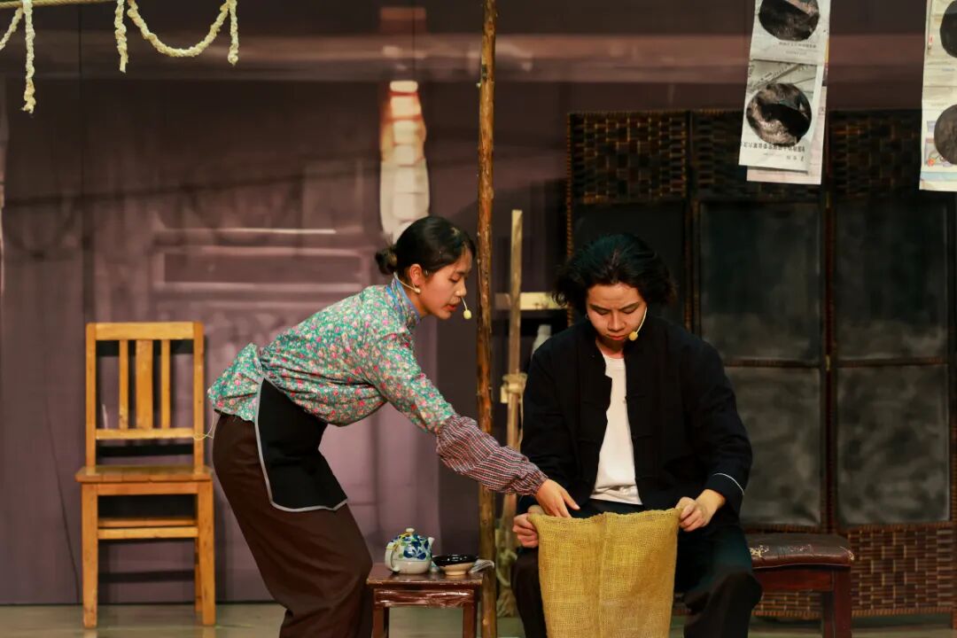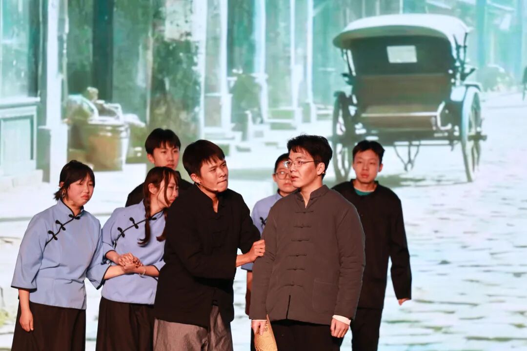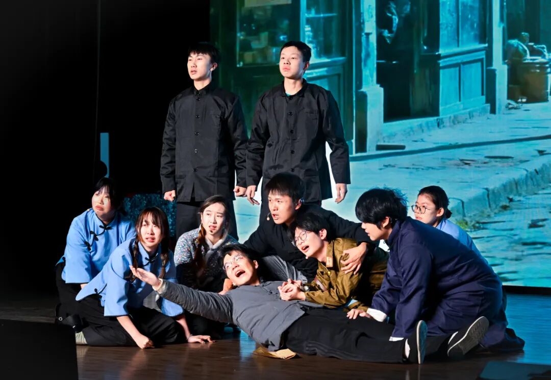 话剧《黎明初醒》改编自经典剧目《窝头会馆》。师生团队对剧本进行了精心打磨与当代化解读,在忠实原著精神的基础上融入青年视角,并通过细致的舞台布景与道具还原时代氛围,最终在舞台上成功塑造了特定历史时期的人物群像,展现了扎实的经典演绎能力。