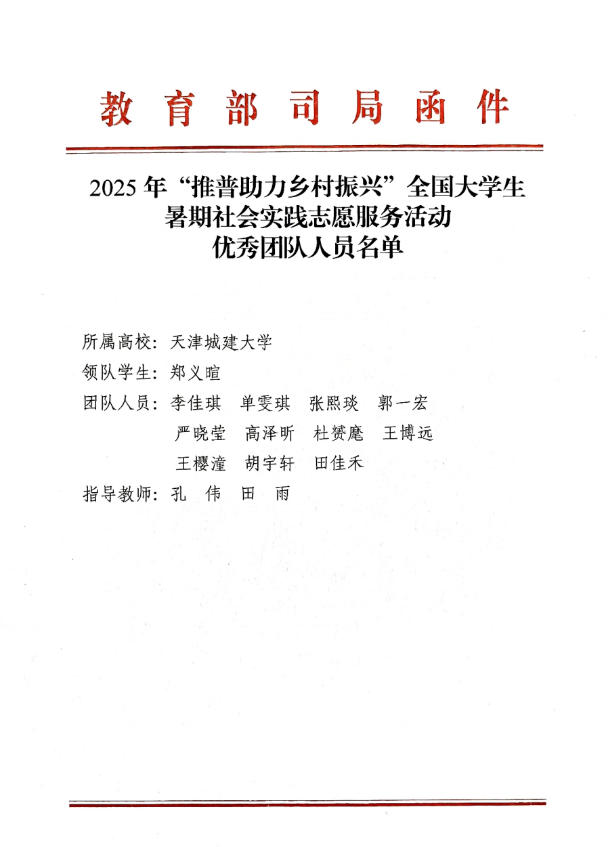 近日,教育部语言文字应用管理司与共青团中央青年发展部联合发文,对2025年“推普助力乡村振兴”全国大学生暑期社会实践志愿服务活动优秀团队予以通报表扬。我校国际工程学院“雨润陕甘,红韵传声”实践团凭借扎实的实践成效和突出的社会贡献,从全国2000支参评团队中脱颖而出,斩获全国“优秀团队”称号。
