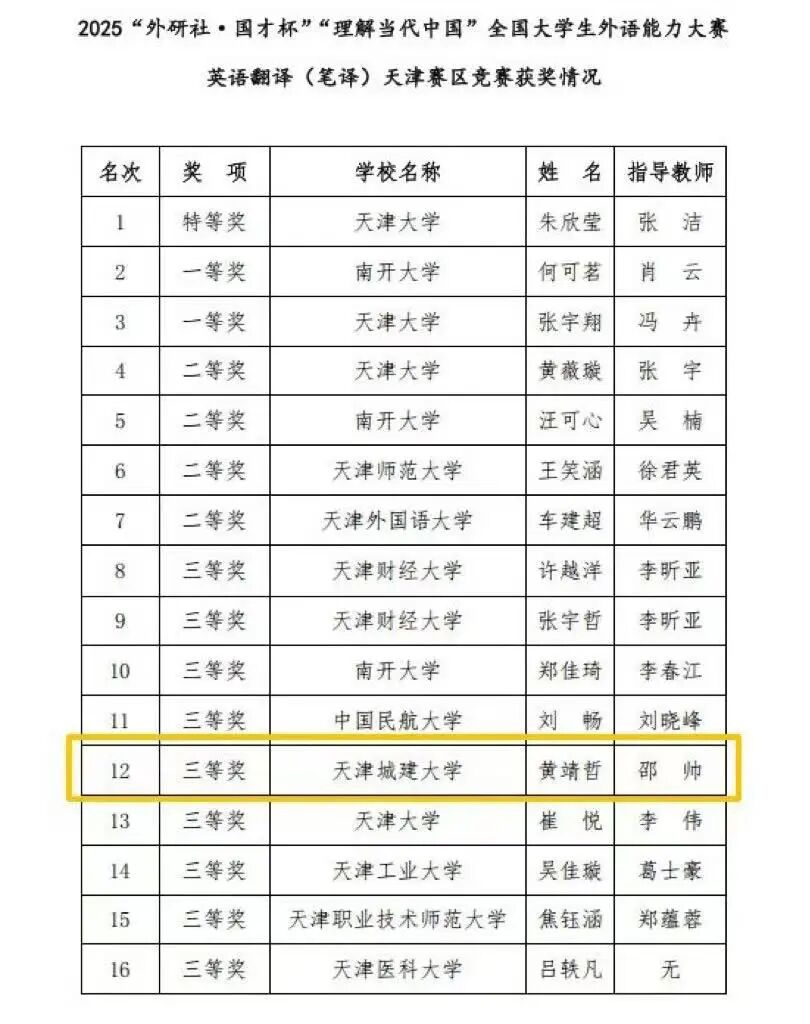本次载誉,是学校持续探索“外语+”人才培养路径、着力塑造具有深厚家国情怀、坚实外语素养和广阔国际视野的时代新人的重要成果。未来,我校将坚持以高水平赛事为牵引、以创新能力为导向,持续搭建成长平台,赋能更多青年学子自信走向世界舞台,积极传递中国声音,为深化文明对话、增强中华文明传播力贡献天城大的智慧与力量。