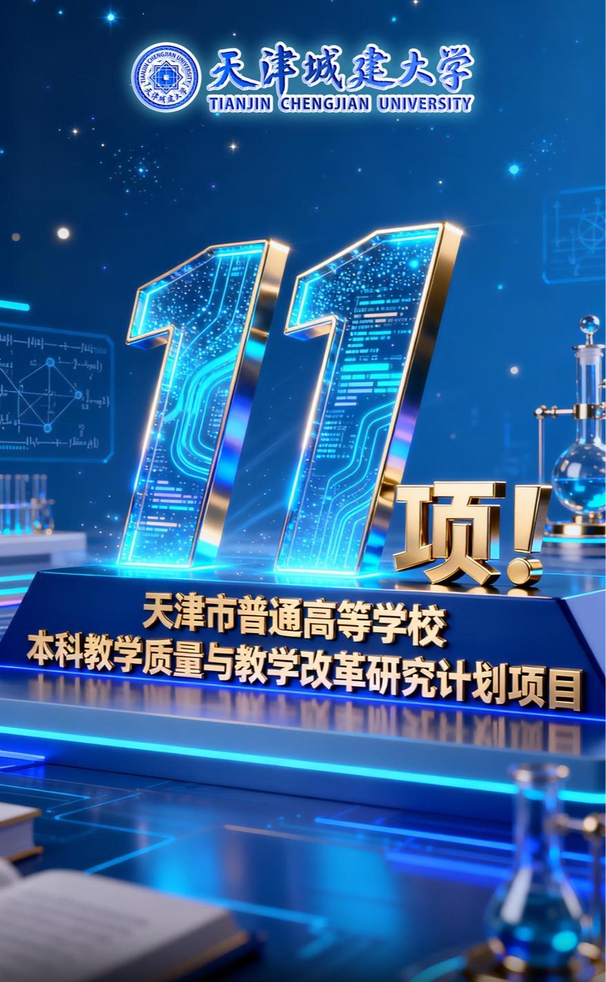近日,天津市教委公布了2025年天津市普通高等学校本科教学质量与教学改革研究计划项目立项名单,我校共有11个项目成功获批立项,其中重点项目3项、一般项目8项,获批率91.7%。截至目前,我校累计获批天津市本科教学质量与教学改革研究计划项目已达77项,充分彰显了我校在本科教育教学研究与改革领域的深厚积淀。