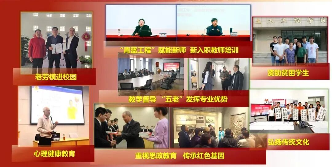 实施“五老”示范工程。“五老”参与更加深入,银发作用充分彰显。引导“五老”在开展思政教育、践行劳模精神、弘扬传统文化、进行教学督导、助力“青蓝工程”、倡导科技创新等方面,不遗余力地为学校事业发展和青年学生健康成长贡献余热。