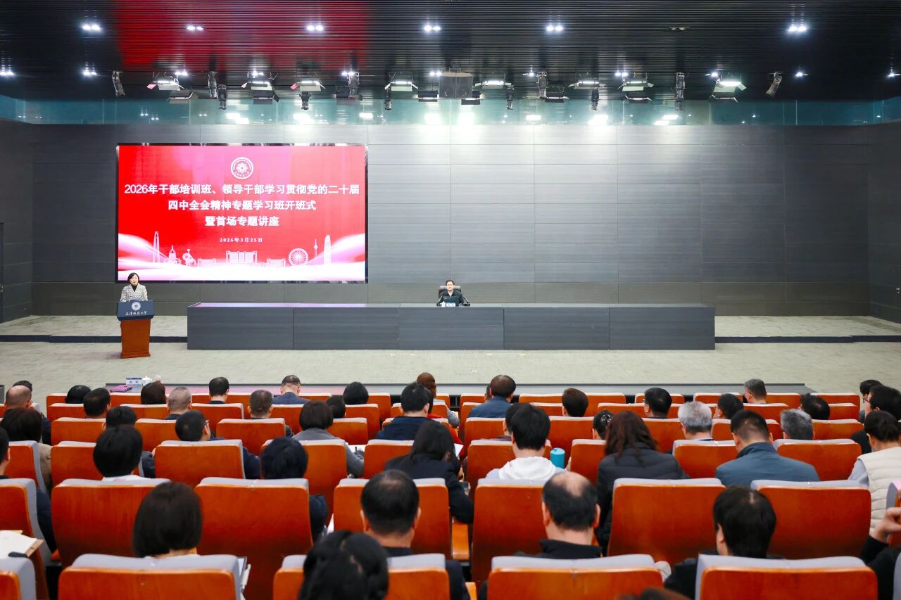 2026年干部培训班暨领导干部学习贯彻党的二十届四中全会精神专题学习班开班式在报告厅举行,校党委副书记王罡主持开班式并作动员讲话。王罡围绕本年度干部培训工作和本次专题学习班,提出三点要求:一是提高政治站位,深刻领会党的二十届四中全会精神的精髓要义,将学习全会精神与学习贯彻习近平总书记关于教育的重要论述结合起来,与巩固拓展主题教育成果结合起来,切实把学习成效转化为推动学校改革发展的强大动能。二是坚持学用结合,把学习成果转化为履职实效,聚焦重点任务,紧扣学校发展实际谋划工作,破解发展难题、补齐发展短板,以正确政绩观引领学校事业高质量发展。三是严肃学习纪律,坚持以师生为中心的发展思想,做到守初心、担使命、严律己、勇争先,确保培训取得扎实成效。