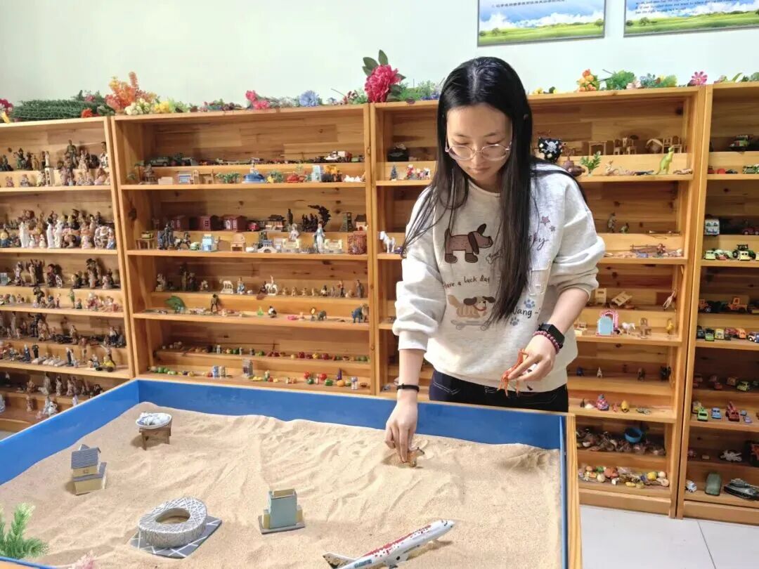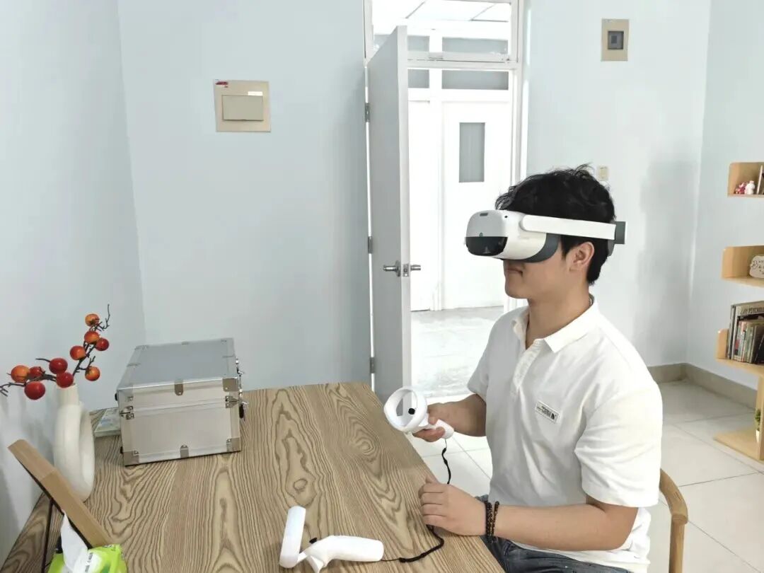 作为本次开放日的核心板块之一,“润心驿站”打卡之旅设置了情绪宣泄体验、沙盘游戏体验、VR模拟体验、咨询室探秘等多个打卡点。其中,VR模拟体验区人气高涨,排起长队。同学们借助虚拟现实技术,在逼真的自然场景中沉浸式减压,纷纷表示:“玩着玩着,压力就不知不觉消失了。”