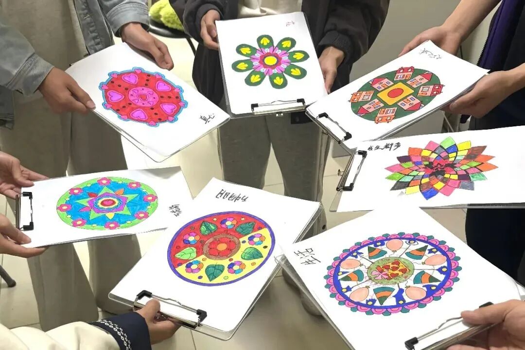 活动期间,心理健康指导中心的专职心理教师还组织了多场“解忧快闪”特色活动,带领学生开展曼陀罗绘画、正念手工体验、团体心理沙盘等活动,帮助学生放松身心、提升自我觉察能力。不少学生在参与后感慨到:“原来调节情绪可以这么简单。”