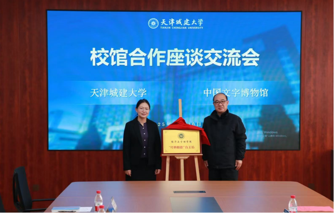 近日,我校经济与管理学院与中国文字博物馆举行校馆合作签约仪式。中国文字博物馆党委委员、副馆长韩英杰、博物馆宣传教育部主任于笑莹出席仪式。我校经管学院党委书记宋慧颖及师生代表参加签约授牌仪式。